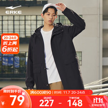 鸿星尔克鸿鹄|外套男士秋季夹克情侣国潮风衣男款连帽梭织外套上衣男 正黑 L