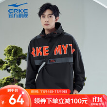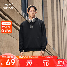 鸿星尔克(ERKE)鸿鹄|卫衣男套头连帽舒适百搭情侣帽衫运动上衣男滑板连帽衫长袖 正黑 L
