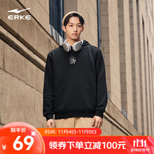 鸿星尔克(ERKE)鸿鹄|卫衣男套头连帽舒适百搭情侣帽衫运动上衣男滑板连帽衫长袖 正黑 L