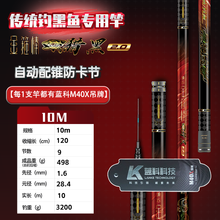 流云金箍棒猎黑版传统钓逗钓黑鱼专用竿12米10长竿短线点钓黑鱼竿手竿 10m 10米逗钓黑鱼专用竿【499g】