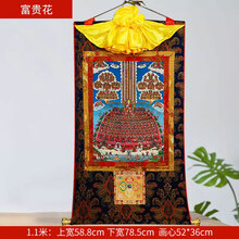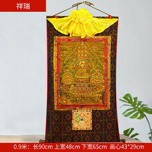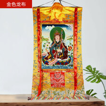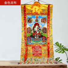 藏村《莲花生大师》唐卡装饰画 办公会议室走廊挂壁画藏式装裱艺术画 金色龙布 长130cm 上宽70cm 下宽88.5cm