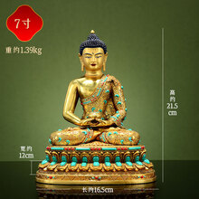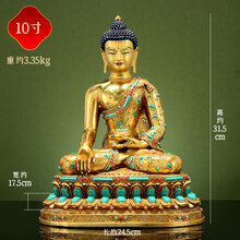 全鎏金《释迦牟尼铜像摆件》居家佛堂神龛供奉《释迦摩尼》佛像摆饰彩珠镶嵌工艺品铜雕 10寸 铜像