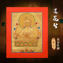 藏村 尼泊尔手绘唐卡《莲花生大师》佛像进口油画布玄关画 24K金绘制客厅装饰画 单画心价格29*22cm 尼泊尔金卡