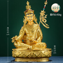 藏村《莲花生大士》神像摆件结缘家用佛教用品全铜鎏金雕花密宗佛像 15寸高约45cm 莲花生大师