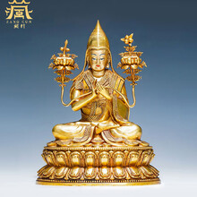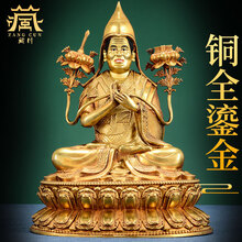 藏村居家玄关茶室《晋美彭措》铜像摆件 鎏金雕花手工工艺品桌面摆饰 6寸鎏金 摆件