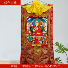 藏村现货《宗喀巴》唐卡挂画 藏式装裱客厅玄关现代中式沙发墙装饰画 0.9m红色古棉布 宗喀巴三尊 唐卡