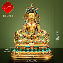 全鎏金《长寿佛铜像摆件》居家佛堂神龛供奉《常寿佛》佛像摆饰彩珠镶嵌工艺品铜雕 10寸 铜像