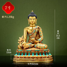 全鎏金《药师佛铜像摆件》居家佛堂神龛供奉《琉璃光如来》佛像摆饰彩珠镶嵌工艺品铜雕 7寸 铜像