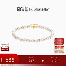 潮宏基 黄18K金珍珠手链女淡水珍珠手串送女友生日礼物