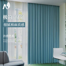 Nebres Home极简遮光窗帘免打孔韩褶挂钩好洗环保无味客厅飘窗卧室日本设计 天空蓝 米