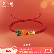 周六福(ZLF) 黄金转运珠女款足金编织手绳胡萝卜金珠红绳 定价 16+6cm(金重约0.23g)