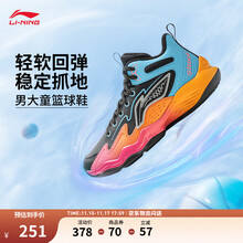 李宁童鞋篮球鞋男大童25新款反光回弹支撑稳定舒适运动鞋 黑色-1 37
