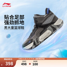 李宁童鞋反光回弹篮球鞋男大童25秋冬季款中帮轻质止滑耐磨运动鞋 马路灰/黑色-1 36