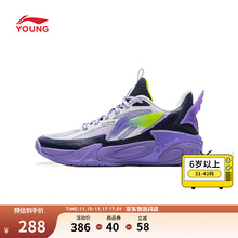 李宁童鞋回弹支撑先锋力6 TEAM V2篮球鞋男大童25新款反光中帮运动鞋 富贵紫/虹蓝色/黑色-5 35