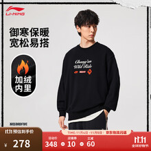 李宁韦德系列男子加绒保暖宽松套头连帽卫衣 黑色-7 S