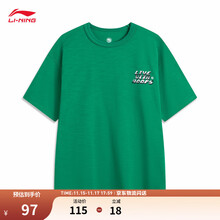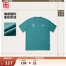 李宁中国李宁圆领短袖T恤情侣款25夏季棉质潮流印花运动上衣 水墨绿-1 S