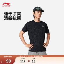李宁反光抗菌速干短袖T恤男子25新款专业跑步系列运动上衣 黑色满底印-1 M
