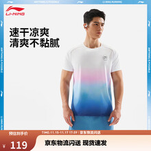 李宁速干短袖T恤男子25夏季新款潮流渐变撞色跑步运动上衣 标准白/空蓝色/紫粉色满底印-1 2XL