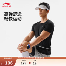 李宁专业跑步系列速干T恤男25新款跑步健身反光透气修身短袖 黑色-1 M