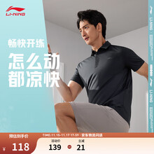 李宁户外POLO衫男夏季排湿速干T恤休闲小LOGO翻领短袖运动上衣 黑色-1 S