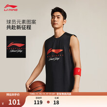 李宁杨瀚森专业篮球系列背心2025新款男子纪念背心运动上衣 标准黑-1 M