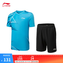 李宁羽毛球服俱乐部系列速干比赛套装上衣短裤 新疆蓝黑色-3 M