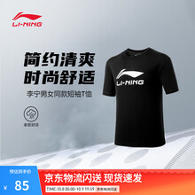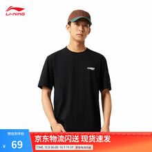 李宁速干短袖圆领T恤情侣款羽毛球柔软舒适简约运动上衣 黑色-1 L
