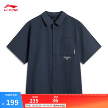 李宁舒适吸湿排汗宽松短袖休闲衬衫男25新款运动上衣 深幽蓝-2 S