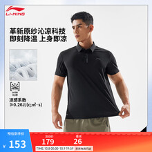 李宁短袖POLO衫男子2025新款舒适防晒简约休闲运动上衣 黑色-2 S
