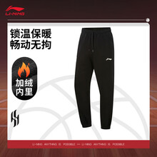 李宁杨瀚森同款篮球系列男子秋冬季束脚加绒保暖宽松卫裤 黑-1 S