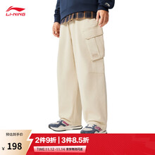 李宁直筒运动裤男子25秋季新款工装口袋宽松休闲长裤 沙丘卡其-1 S