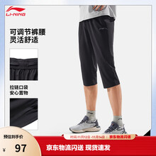 李宁针织运动裤男子2025新款直筒舒适防晒休闲运动七分裤 黑色-2 S