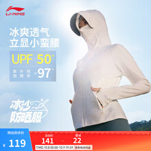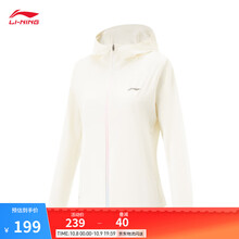 李宁原纱防晒衣女子25新款修身显瘦小蛮腰透气运动连帽上衣 【小蛮腰】乳白色E38-10 XS