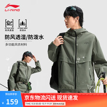 李宁防风防泼水丨冲锋外套男女秋季户外运动时尚连帽开衫夹克上衣 【防风透湿】螺烟绿(951男款)-4 S