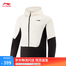 李宁反光防晒立体裁剪运动风衣男子25新款撞色日常百搭连帽运动外套 香槟白/黑色-14 L