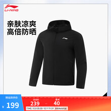 李宁原纱防晒衣男士速干25新款夏季户外运动连帽运动风衣 【透气】黑色E43-4 S