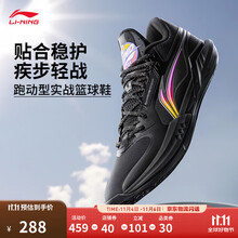 李宁轻速3 Mid丨beng轻弹科技篮球鞋男子轻量高回弹篮球场地鞋 黑色/星河紫-1 39