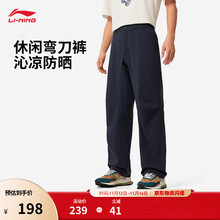 李宁反光舒适防晒运动裤男25新款亲肤弯刀裤直筒休闲裤 深幽蓝-1 S