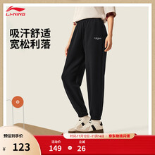 李宁速干卫裤女子25新款休闲舒适吸湿排汗束脚潮流运动裤 黑色-1 XS