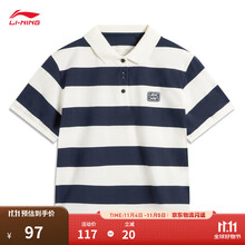 李宁翻领短袖POLO衫女子2025夏季新款时尚条纹休闲运动上衣 乳白色-2 XS
