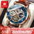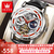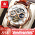 欧利时(OLEVS) 瑞士品牌手表全自动手表男机械表潮流镂空机械手表时尚男士手表防水运动男表夜光腕表 多功能+棕皮玫壳蓝面男