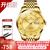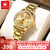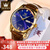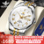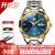 欧利时瑞士认证手表男时尚防水男表潮流夜光男士手表多功能型男机械手表 6638钢带金蓝男表