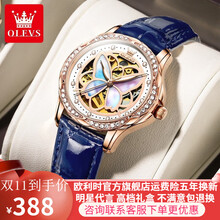 欧利时(OLEVS)瑞士认证品牌手表 女简约气质女士手表全自动机械表夜光防水女表 6615-蓝皮玫壳白面女