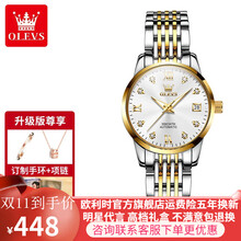 欧利时(OLEVS)女表七夕情人送礼手表女士手表机械防水镶钻夜光表简约气质女神表 升级版+钢带间白女+豪礼