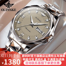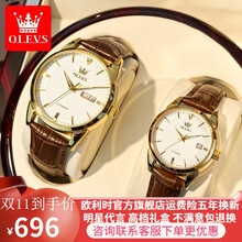 欧利时(OLEVS)瑞士认证男士手表时尚潮流手表 男 机械表防水夜光双日历百搭男表 升级版+棕皮间白女表+豪礼