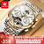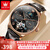 欧利时(OLEVS)手表男机械表潮流镂空机械手表时尚男士手表防水运动表高档腕表 潮流+黑皮玫黑男表