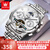 欧品客瑞士认证手表男机械表全自动镂空多功能男士手表夜光防水高档男表 镂空机械+间黑