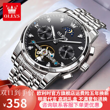 欧利时(OLEVS)瑞士品牌认证手表男机械表全自动多功能男士手表夜光防水高档男表 型男+钢带本黑男表