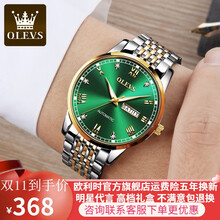 欧利时(OLEVS)手表夜光防水男士手表个性镶钻男表送礼表白全自动手表男机械表 钢带间绿面男