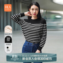 海澜之家(HLA)长袖针织衫女春秋圆领纯羊毛毛衣女 黑色条纹A9 M 160/84A